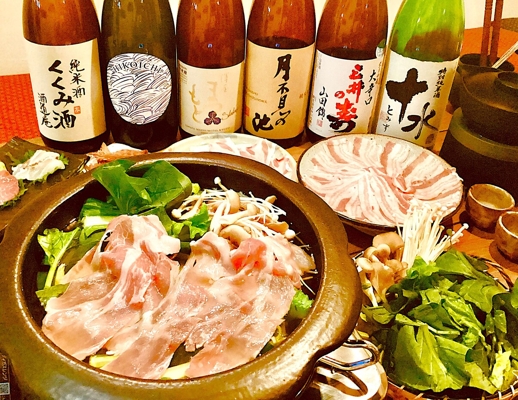 店主が産地から直接仕入れたお肉や野菜、魚介類を使用し、素材を活かした料理をご提供しています。自慢のしゃぶしゃぶは、上質な「茶色豚」を「煎り酒」入りの鍋汁で堪能する至福の料理。コース料理も複数ございます。日本酒は常時30種類をご用意。料理に合った一杯をご提案いたします◎カウンター席とテーブル席があり、明るく広々とした店内で一人飲みからグループ利用、大人数での貸切まで様々なシーンに対応可能です。