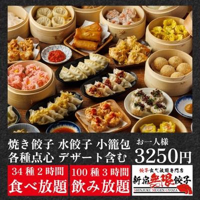 当店イチオシの餃子・点心は一つ一つ手作り♪餡は当店自慢のレシピ。野菜とお肉は国産のものにこだわって作っております!野菜の甘みと肉汁あふれるジューシーな餡は癖になり何個でも食べられちゃいます◎小ぶりなのにしっかりとした自慢の餃子は、お客様に大人気です♪♪ ★焼き餃子&水餃子&小籠包など点心食べ放題 ★2時間が衝撃の1500円飲み放題! ★【日~木限定】生ビールと角ハイボール何杯飲んでも半額でご提供