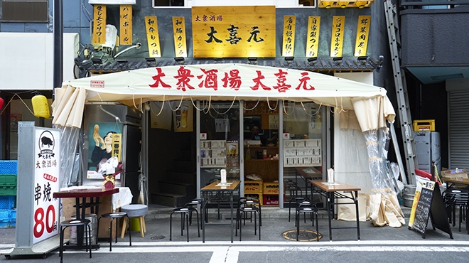 オシャレなネオ居酒屋も良いけれど、大衆酒場で飲みたい日だってある。 映えないけれど、気軽さの極みのようなパイプ椅子に腰かけ、外飲みもできるお店。 しかもそれが新橋駅前徒歩1分、むしろ貴重なロケーションかもしれません。 料理にはもちろんこだわり、国産の豚肉や鶏肉を、備長炭で焼き上げる串焼きが人気です。 味が染み込んだ煮込みや、ハムカツやコロッケなど、大衆酒場の定番も揃っています。 新橋の夜を、ぜひ当店で。