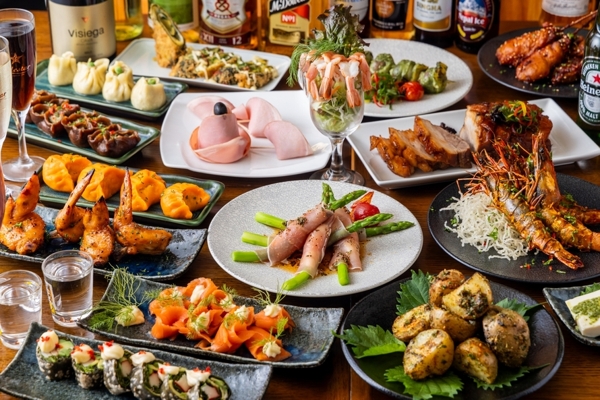 本格インド料理とタイ料理のエスニックレストラン!当店では、51品目のエスニック料理が2時間食べ放題の宴会コースを4500円で提供しています。さらに飲み放題もついており、会社の仲間や友達との飲み会に最適です。また、ちょい飲みセットも990円でご提供。おつまみ3品と生ビールで一日の疲れを癒してください。最大50名様までの貸切も可能なので大きな宴会にも対応。ぜひ、エスニック料理を堪能してみてください!