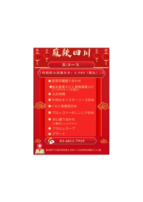 【淡路町駅2分】伝統的な四川料理をベースに、日々新しく生み出される『新派四川料理』をご提供