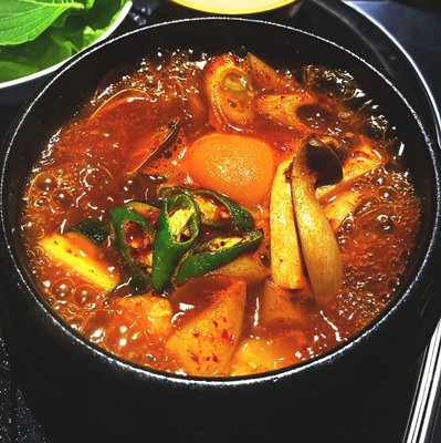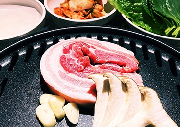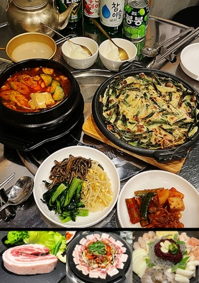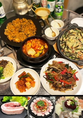 本場韓国の味にこだわった【韓食酒房 幸楽】。韓国直輸入の鉄板で厳選した鹿児島県産ポークを火入れする“サムギョプサル”が自慢です。また、特製のチゲ味噌を使った「スンドゥブ」や、甘辛いヤンニョムが食欲をそそる「豚のトゥルチギ」もご用意◎ビールやマッコリ、チャミスルなどの韓国酒と共にお召し上がりください。ネオンやプロジェクターでポップな雰囲気の店内は、伝統とモダンをテーマにした空間。ぜひお越しください!