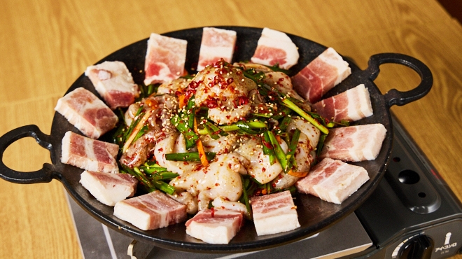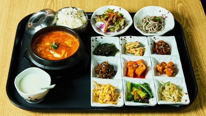 韓国人シェフが手がける本格的な韓国家庭料理を提供する当店。名物のサムギョプサルは、豚バラの旨みとやさしいキムチのバランスが特徴です。ランチは全21種、9品のおかずが日替わりで付く健康志向のセットをご用意!コースはボリューム感ある多彩な料理や、飲み放題も充実。韓国の焼酎やマッコリ、ビールなど本場のドリンクを取り揃えています。仕事帰りの平日夜に、仲間やご家族と気軽に本格韓国料理を囲むひとときをどうぞ。