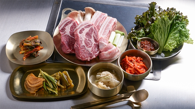 ソウル出身のオーナーが経営する、本場の味が楽しめる韓国料理店。ブランド豚“霧島山麓豚”の熟成サムギョプサルが名物です。韓国から取り寄せたオーダーメイドの鉄板で炭火を使い、スタッフが目の前で焼き上げます。チゲスープやチャプチェなどの一品も◎シャンパンマッコリや韓国焼酎はもちろん、ナチュールワインもご用意しております。店内にはカウンター席やテーブル席を完備。落ち着いた空間でゆったりとお過ごしください。